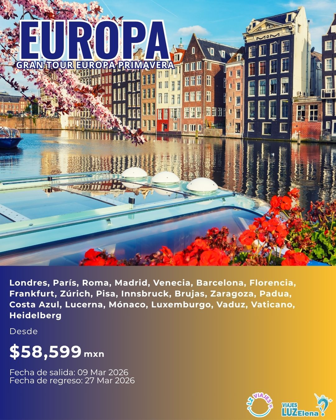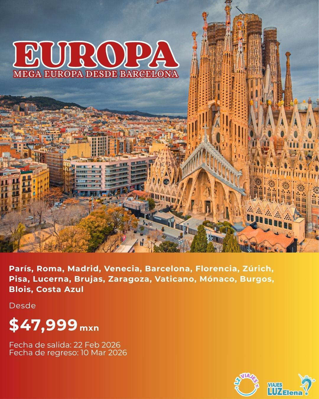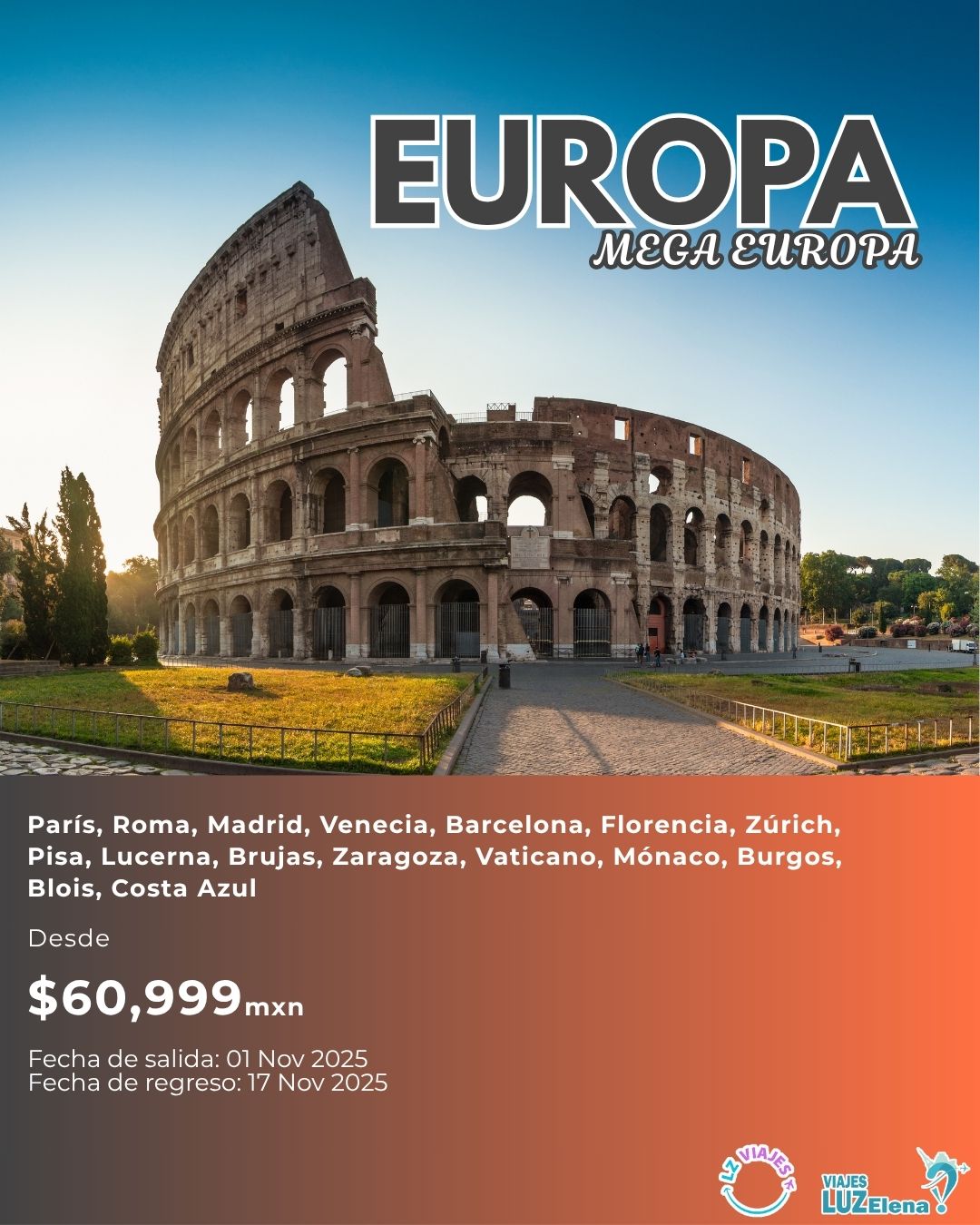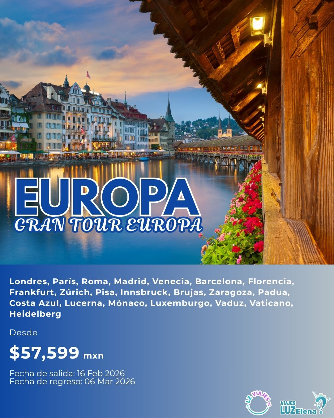 Vive nuevas experiencias La página ideal para tu próxima aventura Combina destinos increíbles, personaliza tu viaje, cambia de plan cuando quieras, y descubre el mundo con LZViajes. Descubre paquetes que encajan contigo Creemos firmemente que todos merecen vivir un viaje inolvidable Explora rutas perfectas, personaliza tu aventura, y cambia tus planes sobre la marcha con la flexibilidad que te ofrece LZViajes. ¡Descubre los mejores destinos con LZ Viajes!Descubre paquetes únicos a Europa, América, África, Oceanía y AsiaCotiza por Whatsapp